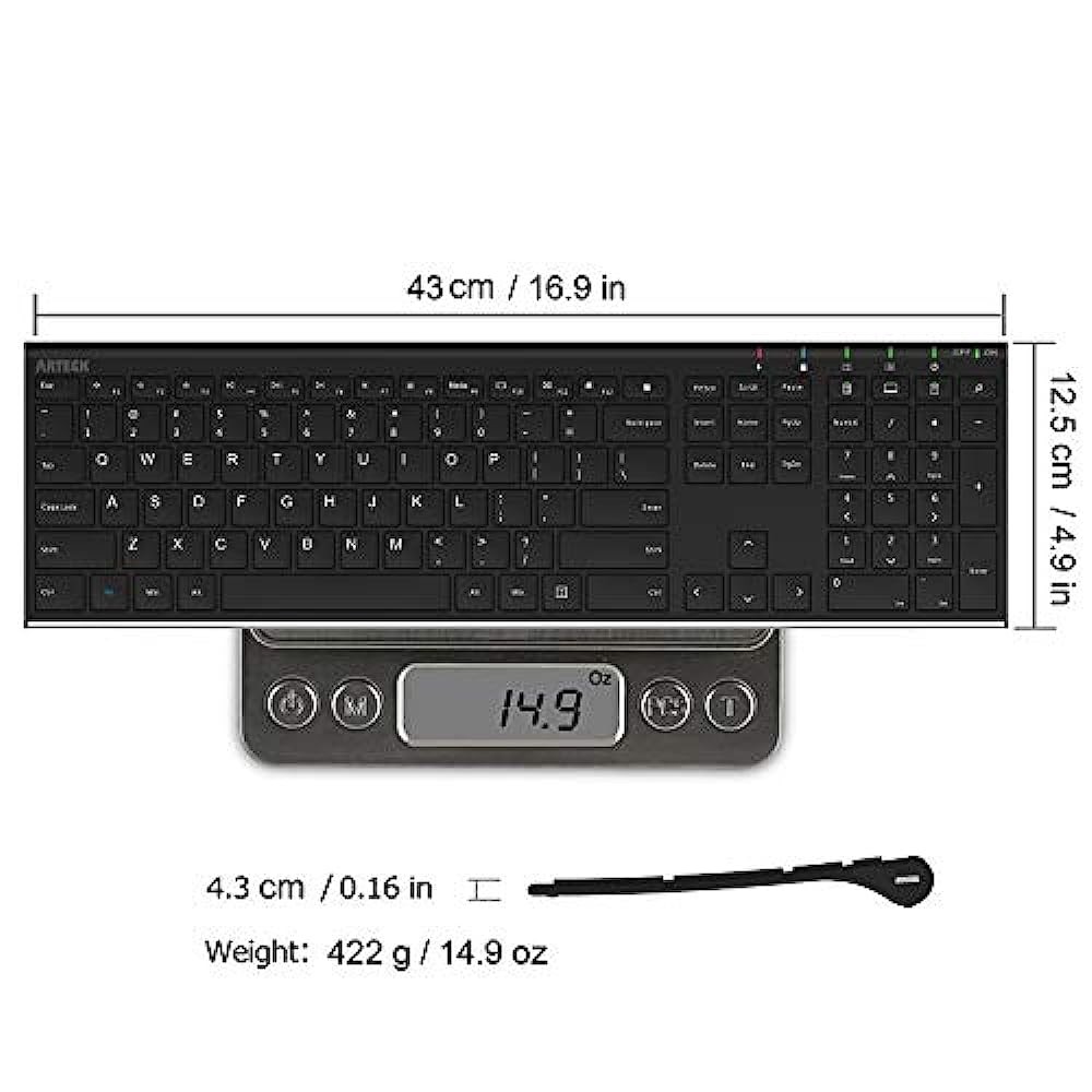 Ergonomic design: Stainless steel material gives heavy duty feeling, low-profile keys offer quiet and comfortable typing.