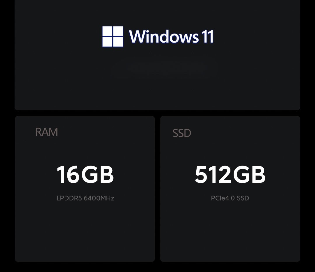 ● 16GB LPDDR5 6400MHz RAM 512GB PCIe4.0 S SD