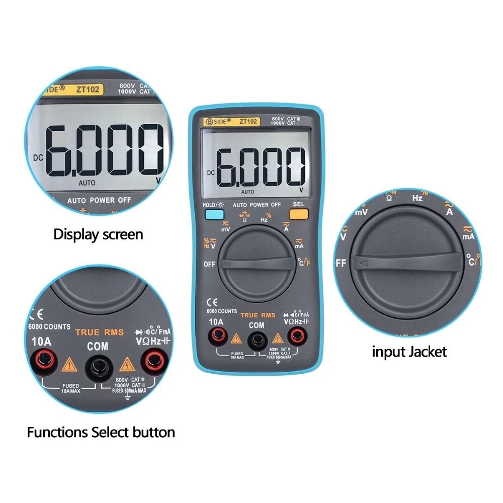 ZT102真有效值数字万用表交直流电压电流温度欧姆频率二极管电阻电容 测试仪